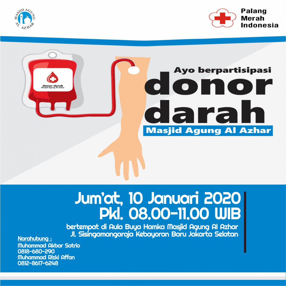 By @maalazhar : Masjid Agung Al Azhar bekerjasama dengan PMI mengajak jamaah sekalian ikut serta dalam Donor Darah :